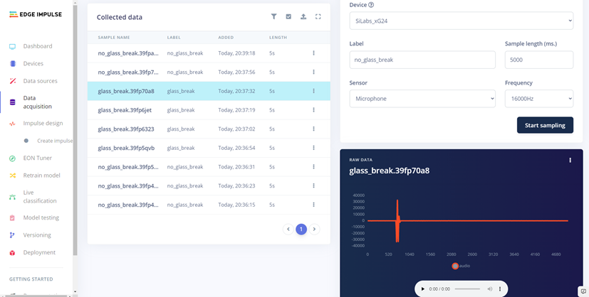 void handle_glassbreak_detection(): This function is triggered when the neural network sets the