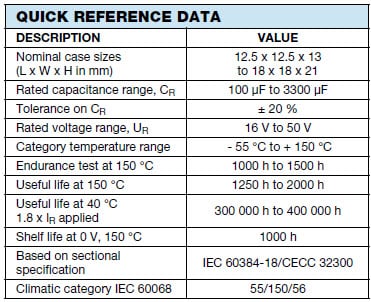 Vishay 160 CLAシリーズアルミニウムコンデンサVishay BCコンポーネント160 CLAシリーズアルミニウムコンデンサは偏アルミ電解コンデンサで、自己回復、低インピーダンス、高温リフローはんだ付けを提供します。Vishay BCコンポーネントの160 CLAシリーズアルミニウムコンデンサには、ピーク電流制限のない充電/放電耐性が備わっています。これらのコンデンサには、100-3300μFの容量範囲、16~50Vの定格電圧範囲、-55ºC~+150ºCの動作温度範囲の特徴もあり、AEC-Q200認定です。160 CLAシリーズコンデンサは、ベースプレートが備わったSMDバージョンでご用意があり、鉛(Pb)フリーリフローはんだ付けが可能です。 |