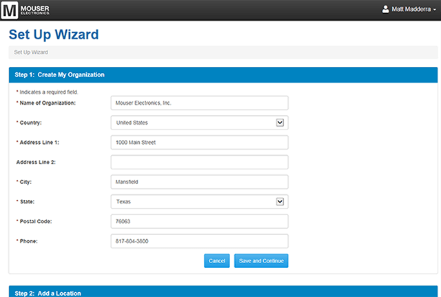 - ステップ1: 「My Organization」の作成 - 企業または所属する組織の基本情報をフォームに入力してください。My Mouserアカウントに基本情報が既に保存されている場合は、自動で入力されます。