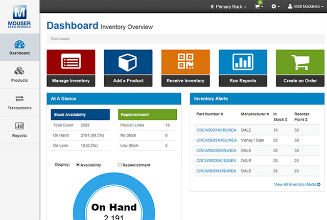 マウザーの在庫管理プラットフォームは、電子部品や関連製品の社内在庫を簡単に管理・追跡できるウェブベースのシステムです。