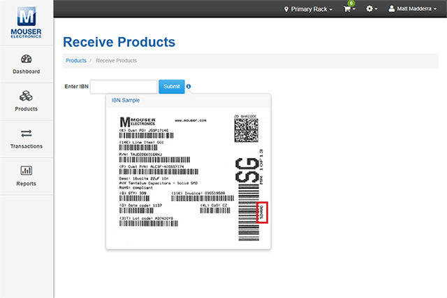 - マウザーラベルのバーコード - 専用フォームが表示されるので、マウザー梱包ラベルに記載されたコードを入力すれば、自動的に製品データが取り込まれます。
