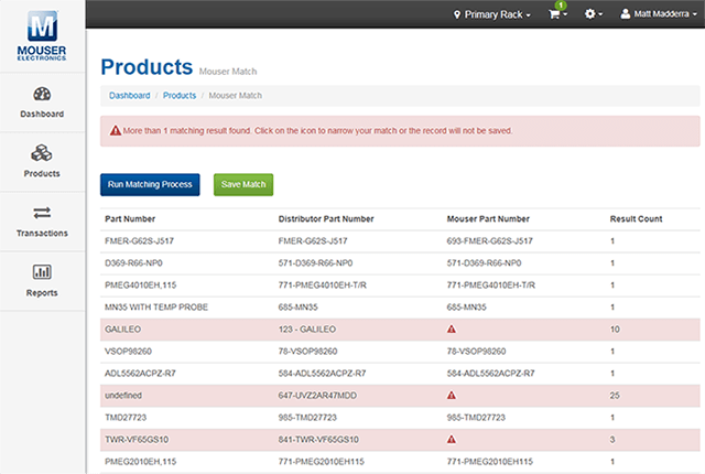 「マウザー・マッチ」機能は、在庫にある製品とマウザー部品番号を紐づけることができます。これには次のメリットがあります: