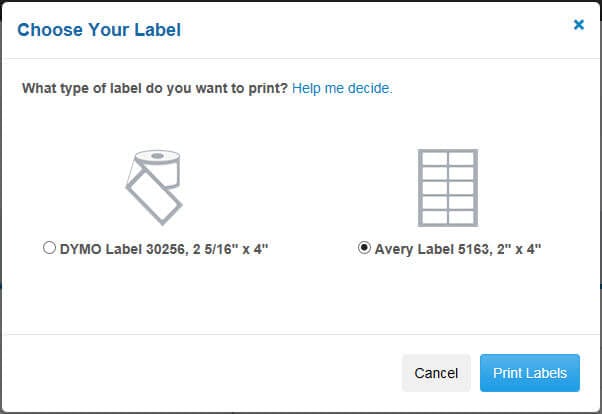 - ラベルサイズ:2 5/16" x 4"